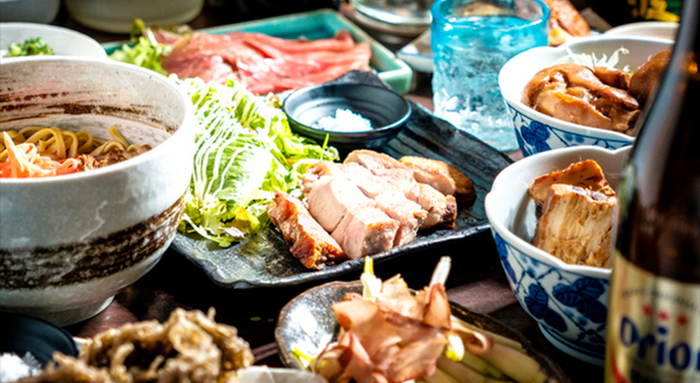 沖縄直送の食材と幻の琉球島豚『あぐー』を使った